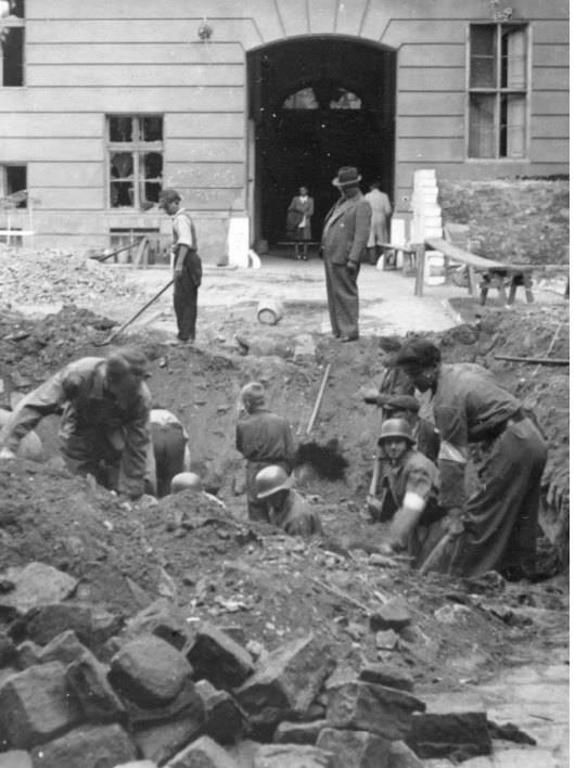 Romeltakarítás a Ráday utca 46. számú ház romjainál (Fortepan/Szesztay család)